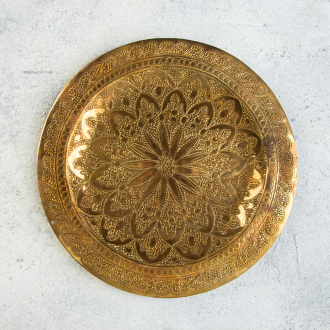 ถาดทองเหลืองเก่าโบราณ ขนาด 12 นิ้ว ถาดโบราณอายุประมาณ 60 ปี สภาพสมบูรณ์ ไว้ใช้สำหรับใส่ผลไม้ วางประดับบนโต๊ะอาหาร หรือตกแต่งบ้านเพื่อความสวยงามก็ได้เช่นกันค่ะ